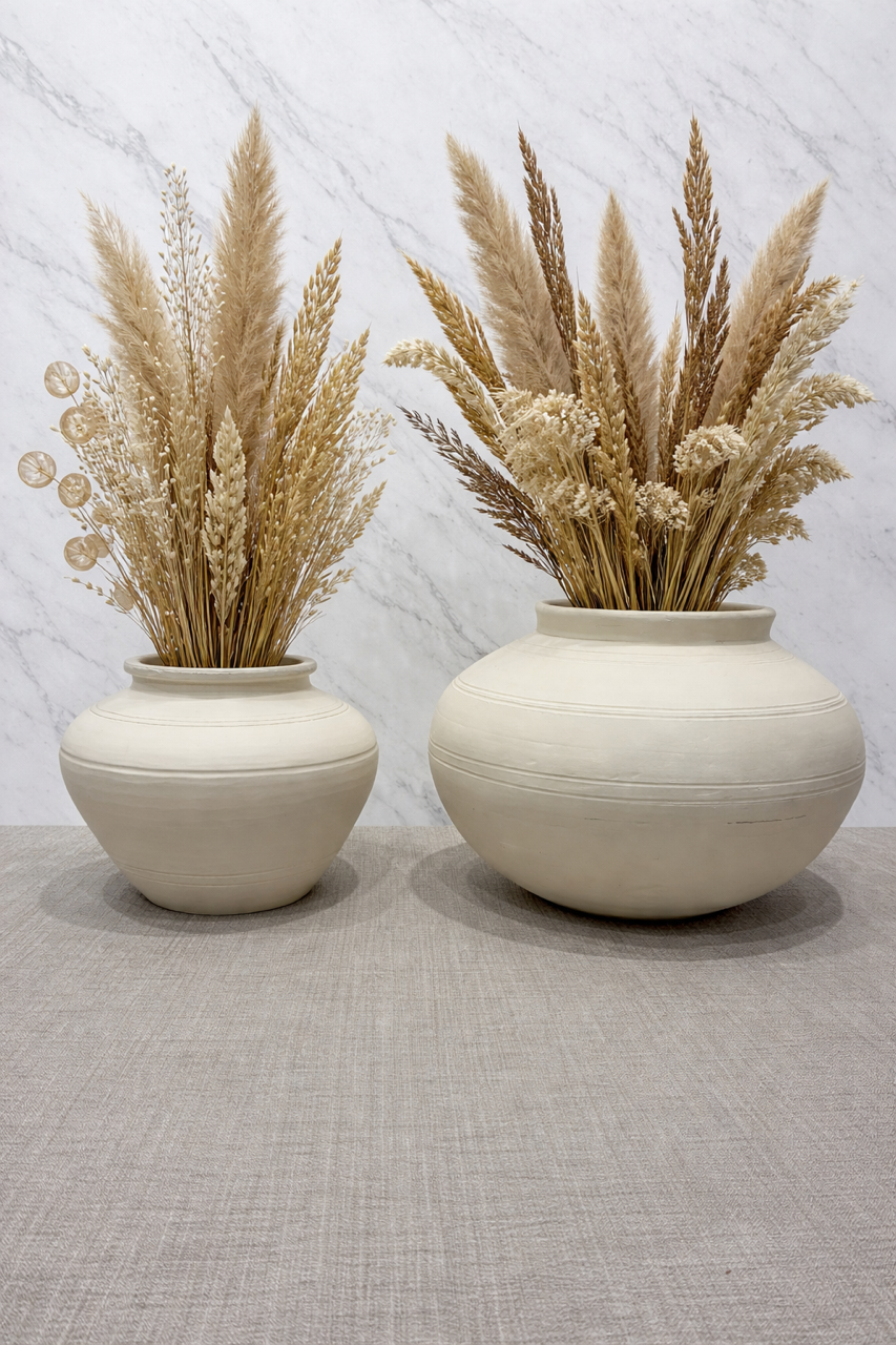 Designed for modern, minimalist, and neutral interiors, the Kendrick vases work beautifully as standalone decorative pieces or styled with dried florals, branches, or faux arrangements. Their low, wide form makes them ideal for coffee tables, dining centerpieces, consoles, and shelf styling.