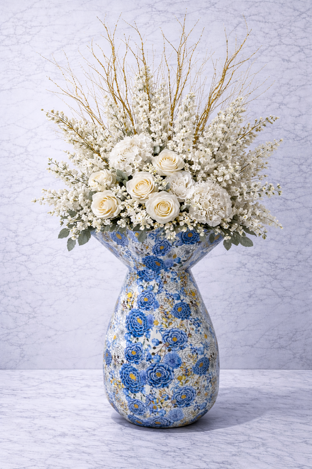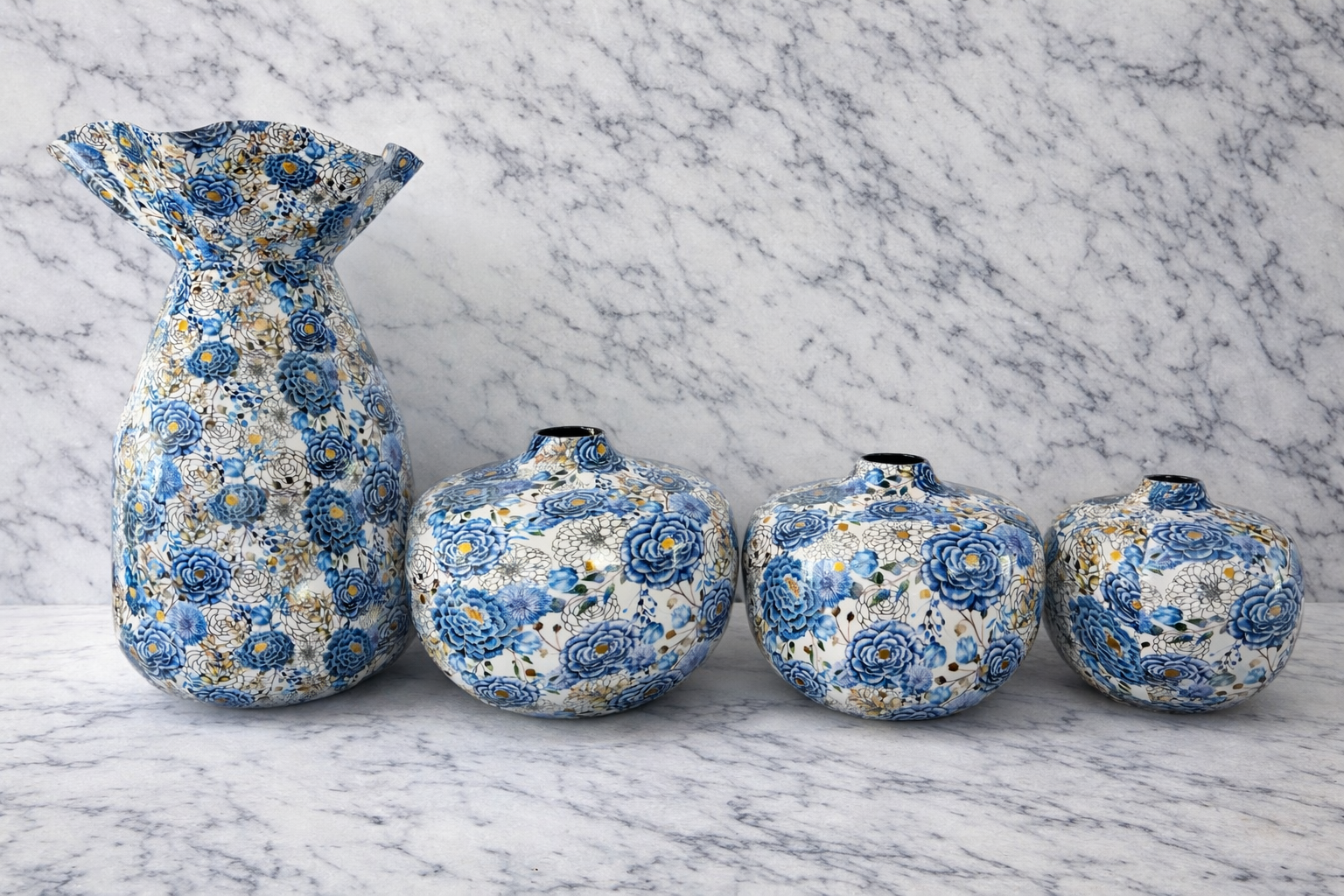 The Martin Printed Metal Vase Collection blends timeless blue-and-white florals with a modern metal form, creating a statement piece that feels both classic and contemporary. Inspired by traditional chinoiserie and porcelain patterns, each vase features intricate floral detailing printed over a smooth metal base for a refined, heirloom look.